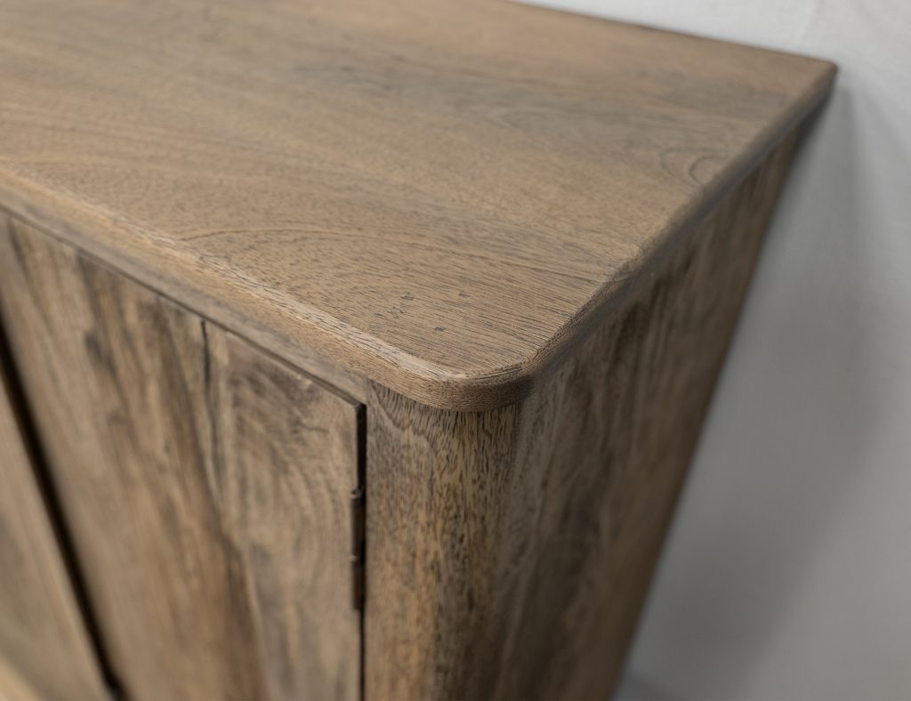 • Transform your space into a modern organic sanctuary with the Xel Ha Collection. Crafted from sustainable mango wood in a soothing brown finish, this minimalist collection is distinguished by clean lines and soft, rounded edges. Its versatile design ensures it seamlessly complements any space with charm.