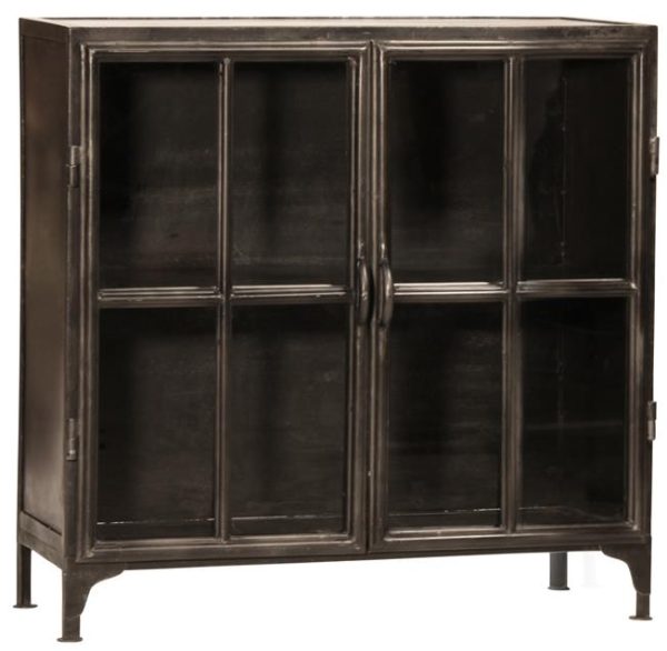 York Sideboard Sheet Metal Steel Glass Distressed Gunmetal Finish Waxed Welded India
