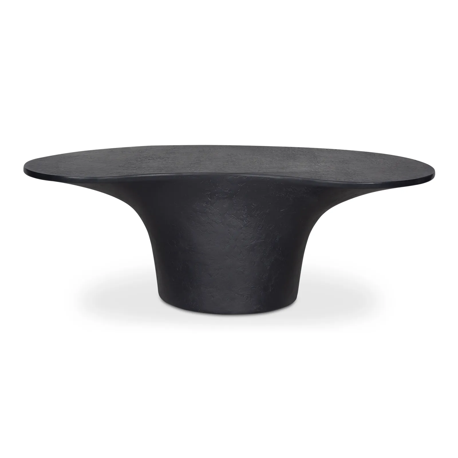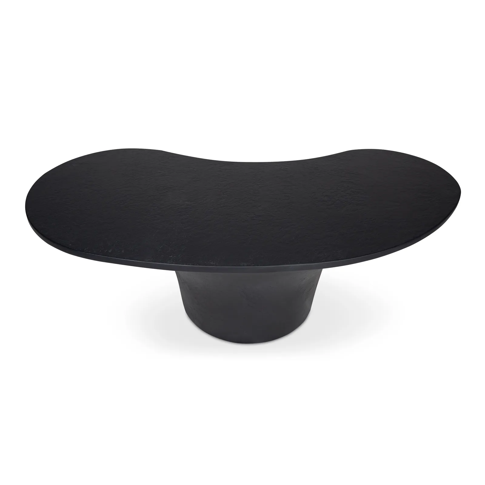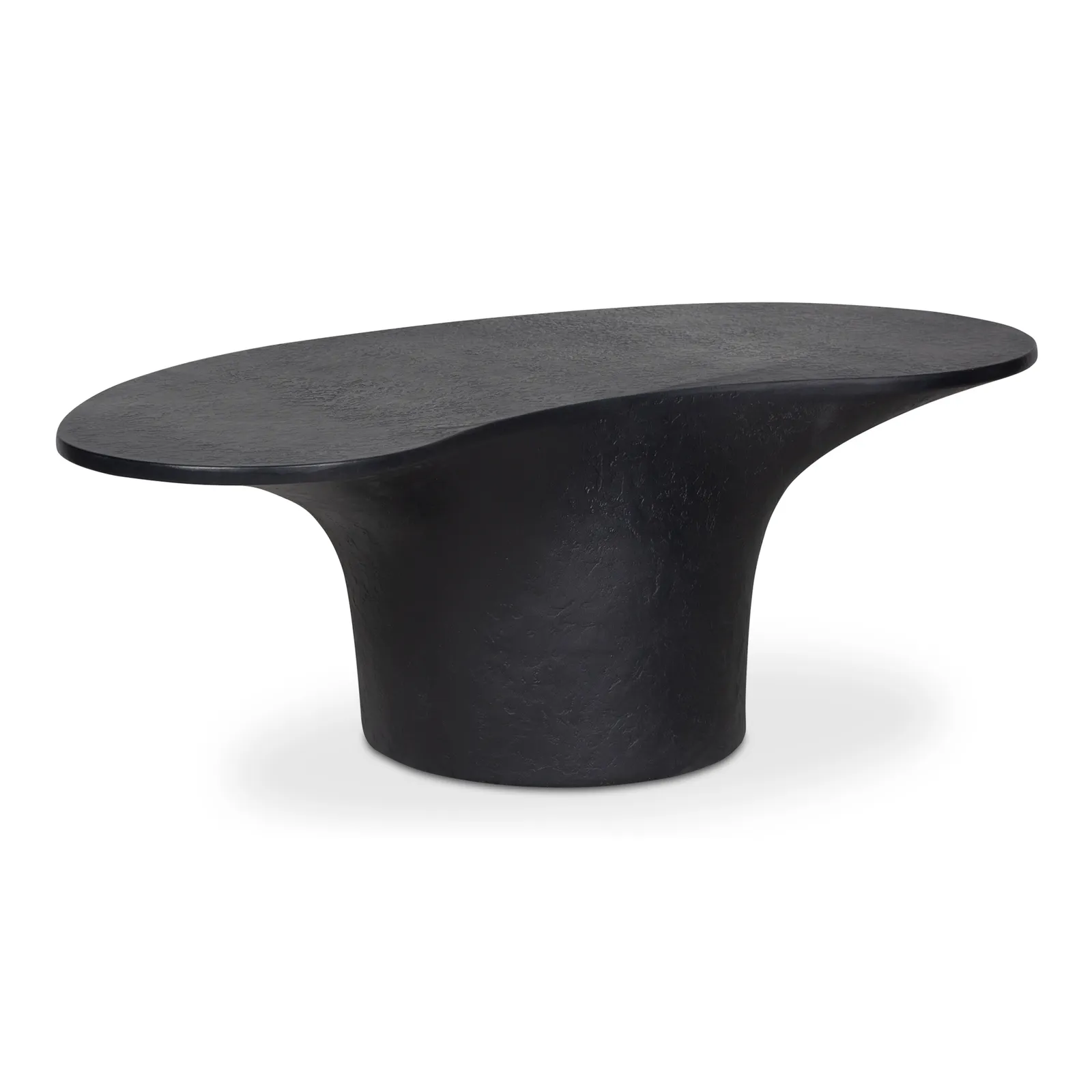 A bold blend of style and stability, the Yumi outdoor coffee table features a freeform top perfectly balanced upon a pedestal-style base for a modern yet grounded look. Crafted from glass fiber-reinforced Concrete that combines cement, glass fiber, and Styrofoam for durability and lightness, its rough texture adds a layer of tactile interest, transforming its contemporary form into a centerpiece of conversation.
